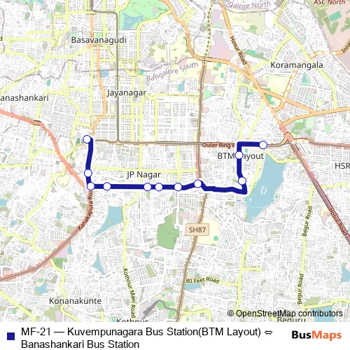 MF-21 Bus - Kuvempunagara Bus Station(BTM Layout) ⇔ Banashankari Bus Station