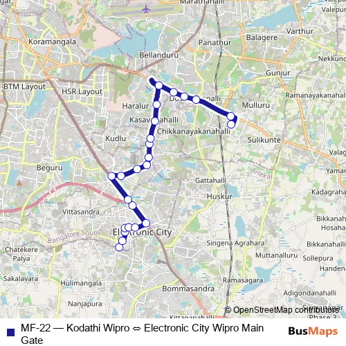 Kodathi Wipro. MF-22 (Kodathi Wipro ⇔ Electronic City Wipro Main Gate) is operational during everyday.