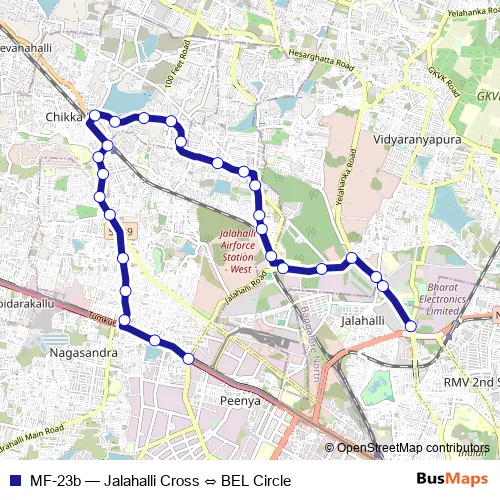 Bus MF-23b - Jalahalli Cross ⇔ BEL Circle in Bengaluru: Stops & Timetable