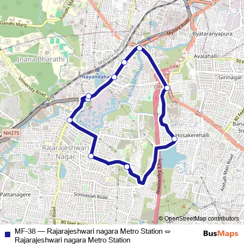 Click here to view the nearest MF-38 - Rajarajeshwari nagara Metro Station ⇔ Rajarajeshwari nagara Metro Station bus stop.