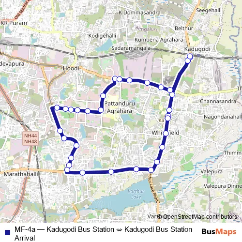 Click here to view the nearest MF-4a - Kadugodi Bus Station ⇔ Kadugodi Bus Station Arrival bus stop.
