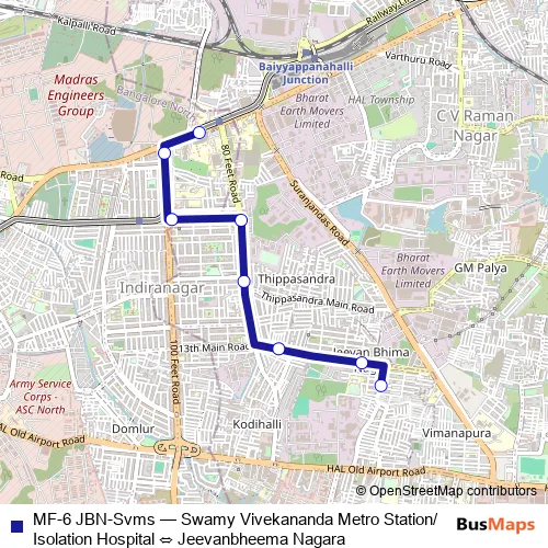 Bus MF-6 JBN-Svms - Swamy Vivekananda Metro Station/Isolation Hospital ⇔ Jeevanbheema Nagara in Bengaluru: Stops & Timetable