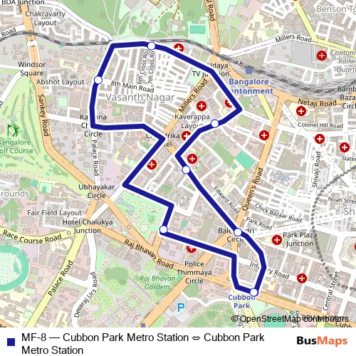 Bus MF-8 - Cubbon Park Metro Station ⇔ Cubbon Park Metro Station: Full Schedule in Bengaluru