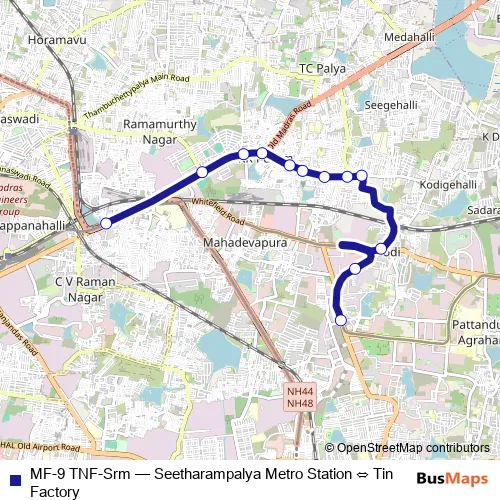 Bus MF-9 TNF-Srm - Seetharampalya Metro Station ⇔ Tin Factory: Full Schedule in Bengaluru
