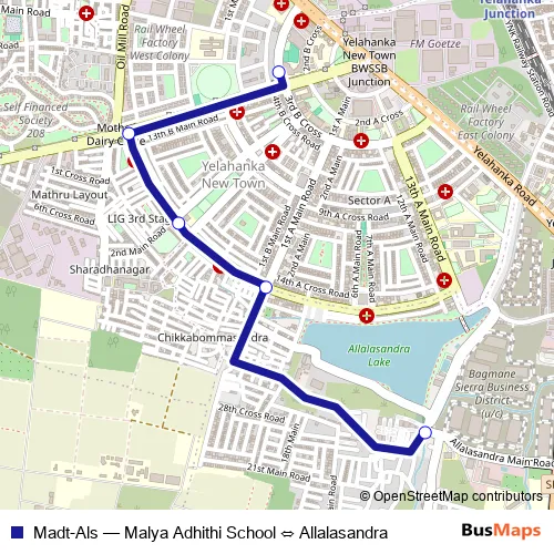 Click here to view the nearest Madt-Als - Malya Adhithi School ⇔ Allalasandra bus stop.