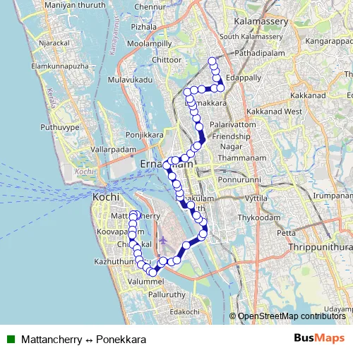 Additional information: Mattancherry ↔ Ponekkara has 53 stops and the total trip duration