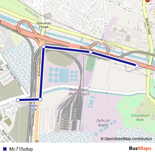 The first stop of the Mc715stlup bus route is Burari Crossing and the last stop is Majlis Park Dmrc Depot. Mc715stlup is operational during everyday.
