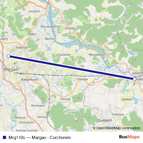 The first stop of the Mrg110s bus route is Curchorem - Savordem KTC Bus Stand and the last stop is Margao KTC Bus Stand. Mrg110s (Margao - Curchorem) is operational during everyday.
