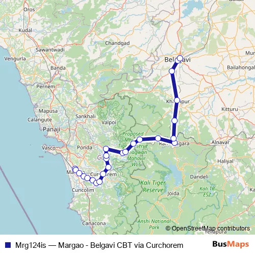 Bus Mrg124is - Margao - Belgavi CBT via Curchorem: Full Schedule in Quepem