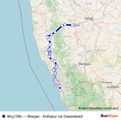 Bus Mrg129is - Margao - Kolhapur via Sawantwadi in Panjim: Stops & Timetable