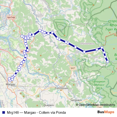 The first stop of the Mrg148 bus route is Collem and the last stop is Margao KTC Bus Stand. Mrg148 (Margao - Collem via Ponda) is operational during everyday.