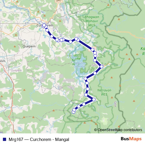 The first stop of the Mrg167 bus route is Mangal and the last stop is Curchorem - Savordem KTC Bus Stand. Mrg167 (Curchorem - Mangal) is operational during everyday.