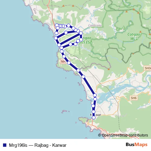 The first stop of the Mrg196is bus route is Karwar Beach and the last stop is Rajbag. Mrg196is (Rajbag - Karwar) is operational during everyday.