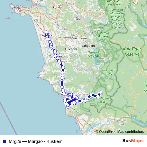 The first stop of the Mrg29 bus route is Kuskem and the last stop is Margao KTC Bus Stand. Mrg29 (Margao - Kuskem) is operational during everyday.