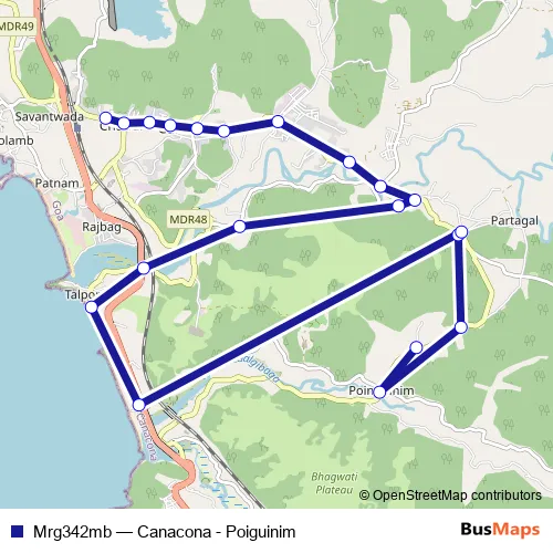 The first stop of the Mrg342mb bus route is Poigunim and the last stop is Canacona KTC Bus Stand. Mrg342mb (Canacona - Poiguinim) is operational during everyday.