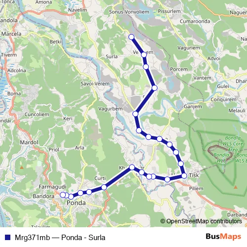 Bus Mrg371mb - Ponda - Surla in Usgao: Stops & Timetable