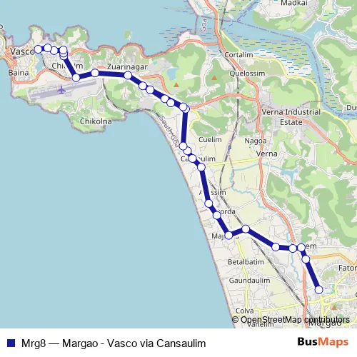 Bus Mrg8 - Margao - Vasco via Cansaulim: Full Schedule in Panjim