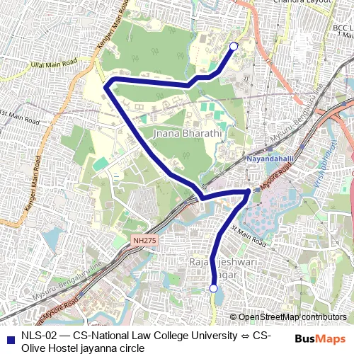 Bus NLS-02 - CS-National Law College University ⇔ CS-Olive Hostel jayanna circle Schedule in Bengaluru