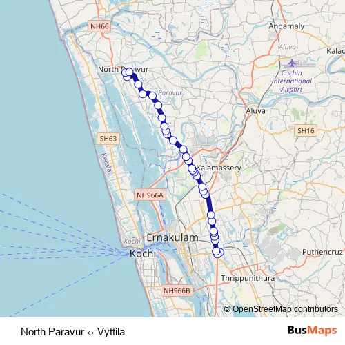 See why over 2 million users trust and consider busmaps.com as the best public transport website. busmaps gives you Vazhakkala Buses suggested routes, real-time bus tracker, line route maps in Vazhakkala, and helps to find the closest North Paravur ↔ Vyttila bus stops near you. No internet available? Download an offline PDF map and bus schedule for the North Paravur ↔ Vyttila bus to take on your trip.