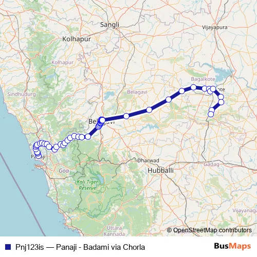 The first stop of the Pnj123is bus route is Panaji KTC Bus Stand and the last stop is Badami. Pnj123is (Panaji - Badami via Chorla) is operational during everyday.