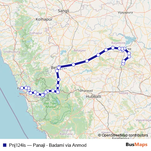 The first stop of the Pnj124is bus route is Badami and the last stop is Panaji KTC Bus Stand. Pnj124is (Panaji - Badami via Anmod) is operational during everyday.
