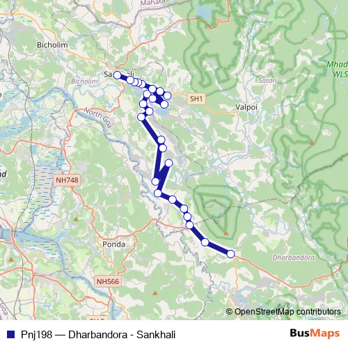 The first stop of the Pnj198 bus route is Dharbandora and the last stop is Sankhali KTC Bus Stand. Pnj198 (Dharbandora - Sankhali) is operational during everyday.