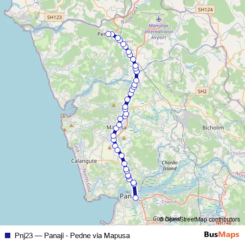 Click here to view the nearest Pnj23 - Panaji - Pedne via Mapusa bus stop.