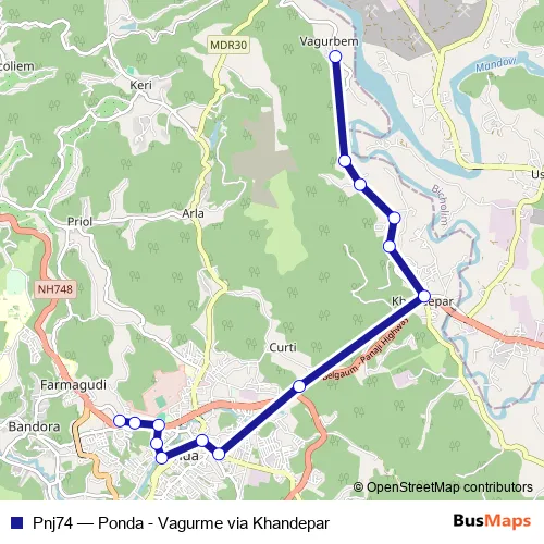 Pnj74 Bus - Ponda - Vagurme via Khandepar