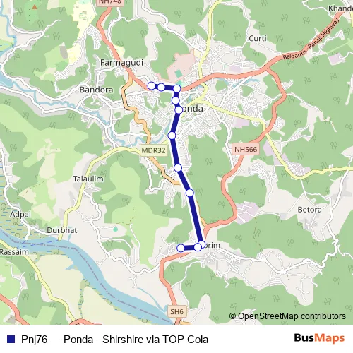 Bus Pnj76 - Ponda - Shirshire via TOP Cola in Panjim: Stops & Timetable