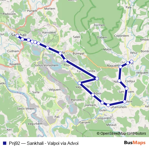 Bus Pnj92 - Sankhali - Valpoi via Advoi: Full Schedule in Valpoi