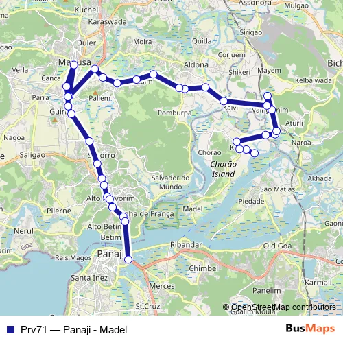 See why over 2 million users trust and consider busmaps.com as the best public transport website. busmaps gives you Panjim Buses suggested routes, real-time bus tracker, line route maps in Panjim, and helps to find the closest Prv71 bus stops near you. No internet available? Download an offline PDF map and bus schedule for the Prv71 bus to take on your trip.