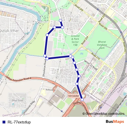 The first stop of the RL-77extstlup bus route is Dwarka Sec 22 Cluster Depot and the last stop is Dwarka Sec 19 Pocket B (T). RL-77extstlup (RL-77extstlup) is operational during everyday.