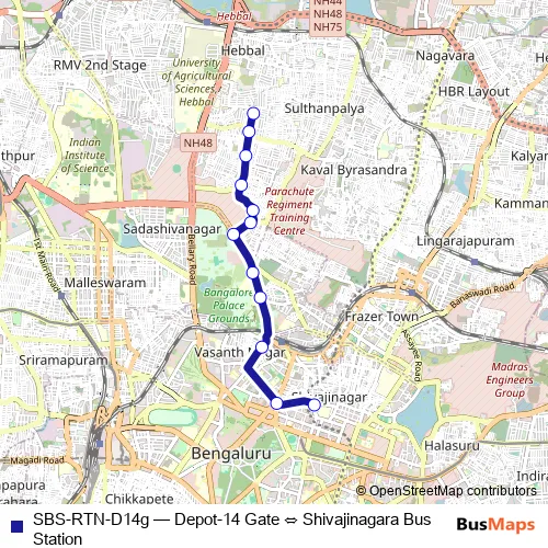 SBS-RTN-D14g (Depot-14 Gate ⇔ Shivajinagara Bus Station) Bus in Bengaluru