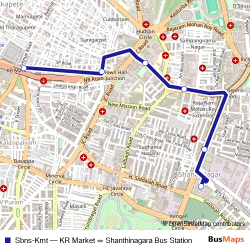 Bus Sbns-Kmt - KR Market ⇔ Shanthinagara Bus Station Schedule in Bengaluru
