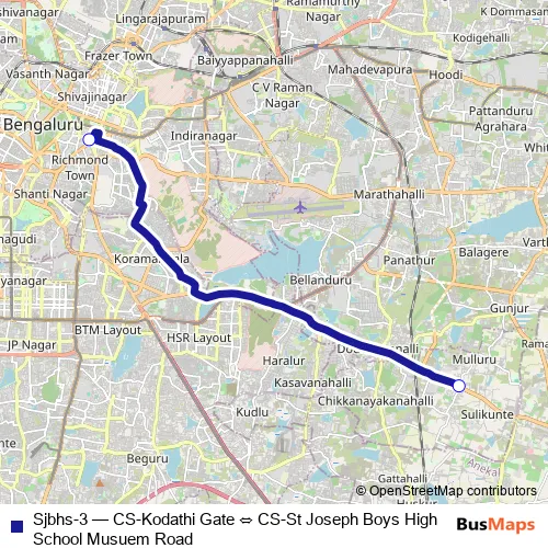 Bus Sjbhs-3 - CS-Kodathi Gate ⇔ CS-St Joseph Boys High School Musuem Road in Bengaluru: Stops & Timetable