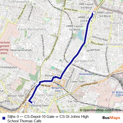 Bus Stjhs-3 - CS-Depot-10 Gate ⇔ CS-St Johns High School Thomas Cafe Schedule in Bengaluru