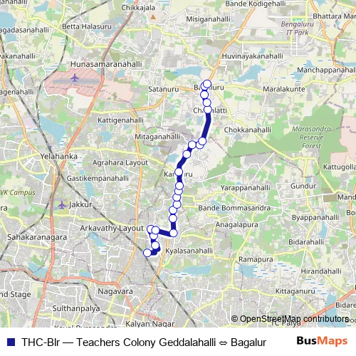 Bus THC-Blr - Teachers Colony Geddalahalli ⇔ Bagalur Schedule in Bengaluru