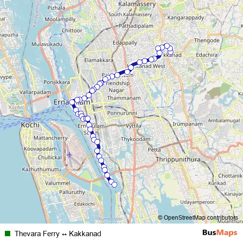 Additional information: Thevara Ferry ↔ Kakkanad has 46 stops and the total trip duration