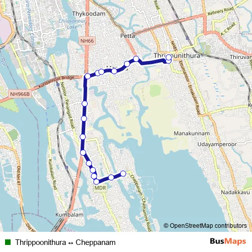 Thrippoonithura ↔ Cheppanam bus Route Map