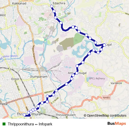 Additional information: Thrippoonithura ↔ Infopark has 33 stops and the total trip duration