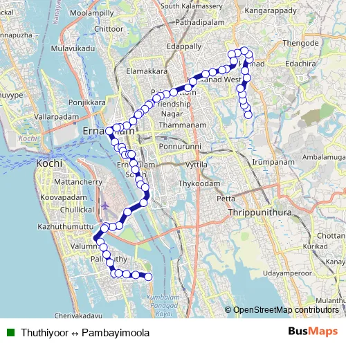 Kochi city bus Thuthiyoor ↔ Pambayimoola bus Route Map
