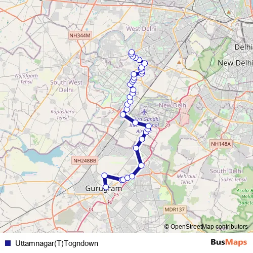 The first stop of the Uttamnagar(T)Togndown bus route is Gurugram Isbt and the last stop is Uttam Nagar Terminal. Uttamnagar(T)Togndown (Uttamnagar(T)Togndown) is operational during everyday.