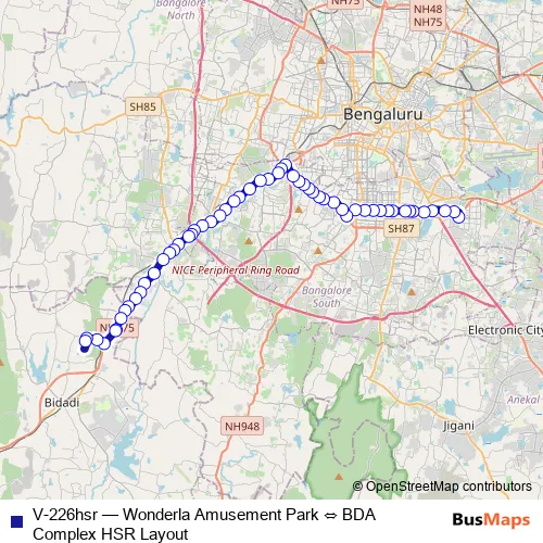 Click here to view the nearest V-226hsr - Wonderla Amusement Park ⇔ BDA Complex HSR Layout bus stop.
