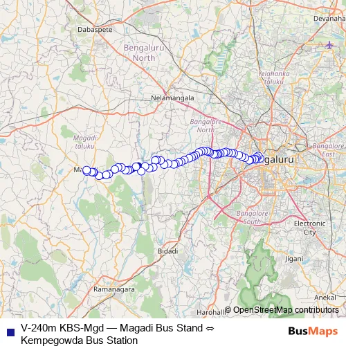 Bus V-240m KBS-Mgd - Magadi Bus Stand ⇔ Kempegowda Bus Station in Bengaluru: Stops & Timetable