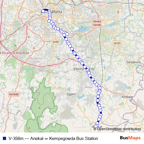 Bus V-356m - Anekal ⇔ Kempegowda Bus Station in Bengaluru: Stops & Timetable