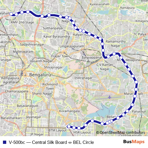 Bus V-500bc - Central Silk Board ⇔ BEL Circle Schedule in Bengaluru