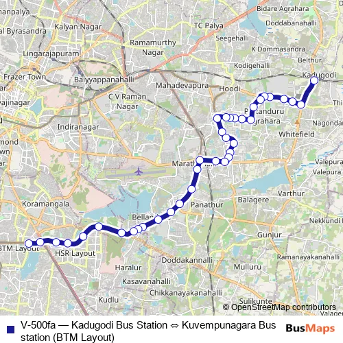 V-500fa Bus - Kadugodi Bus Station ⇔ Kuvempunagara Bus station (BTM Layout)