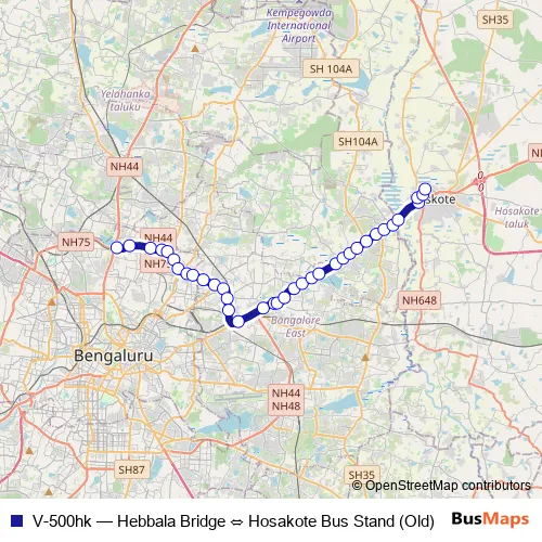 Bus V-500hk - Hebbala Bridge ⇔ Hosakote Bus Stand (Old): Full Schedule in Bengaluru