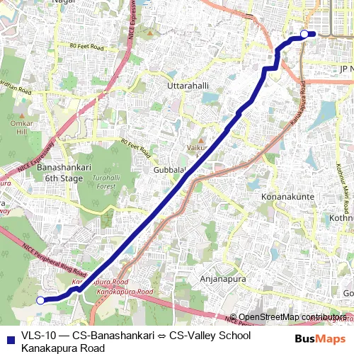 The first stop of the VLS-10 bus route is CS-Banashankari and the last stop is CS-Valley School Kanakapura Road. VLS-10 (CS-Banashankari ⇔ CS-Valley School Kanakapura Road) is operational during everyday.