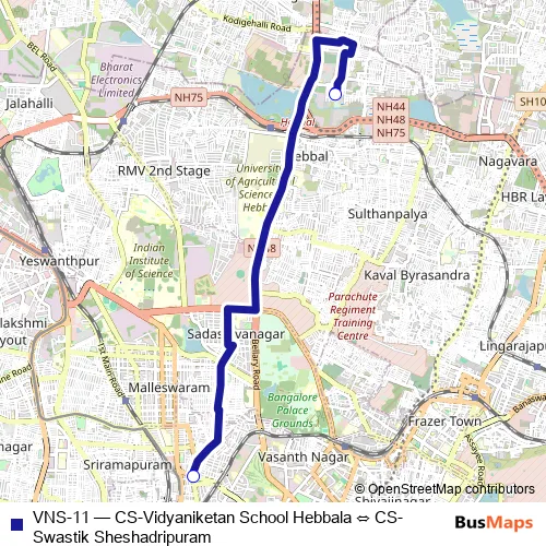 Bus VNS-11 - CS-Vidyaniketan School Hebbala ⇔ CS-Swastik Sheshadripuram in Bengaluru: Stops & Timetable